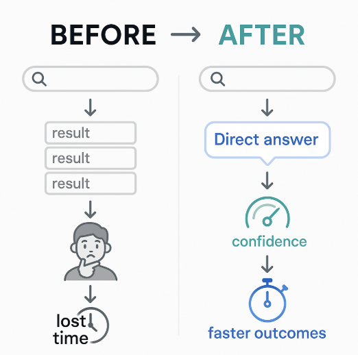 Before we dive deeper, here’s a quick snapshot of how generative search upgrades the experience – from searching endlessly to getting the exact answer instantly: